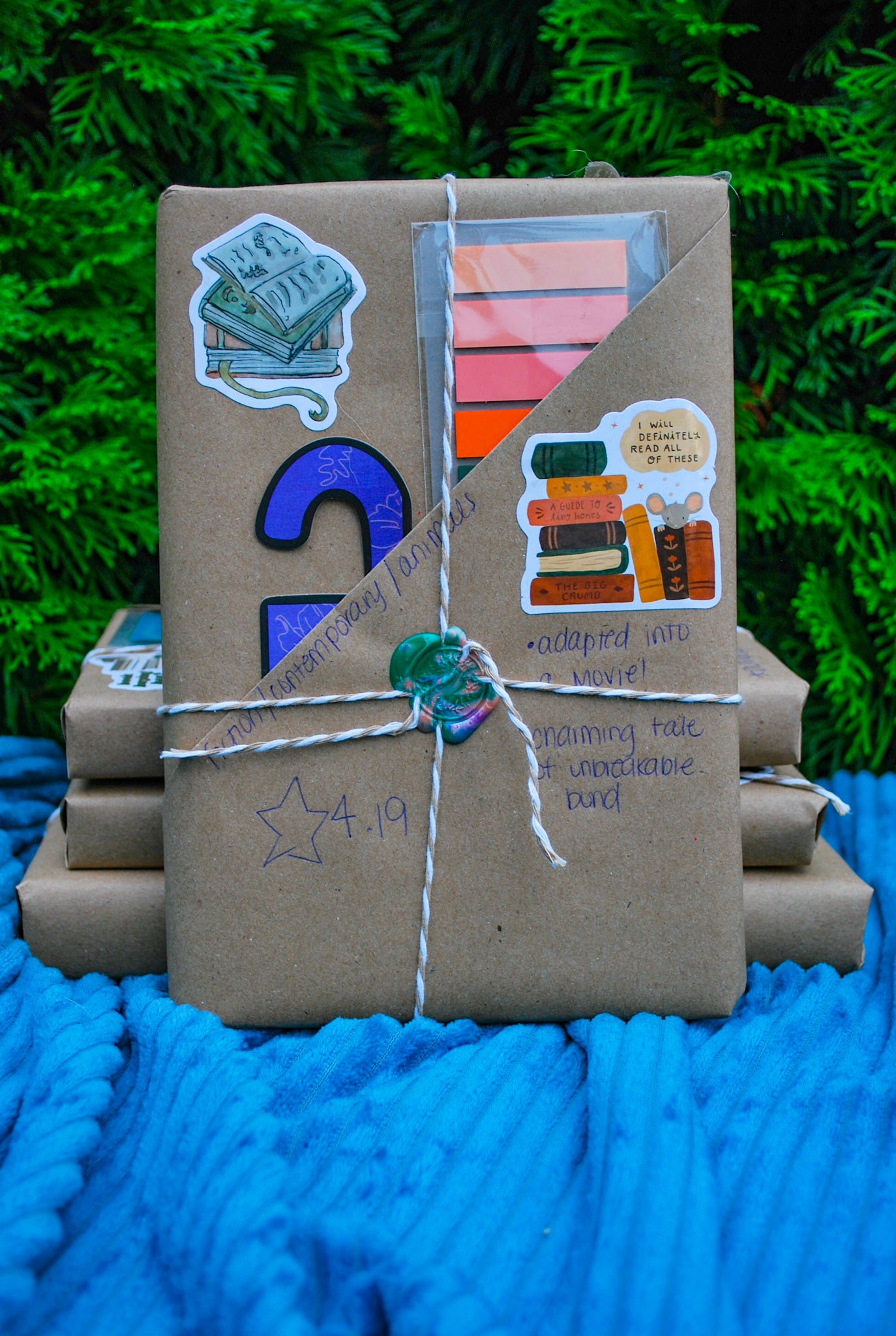 Each mystery thrift includes a few small bookish gifts such as stickers, bookmarks, annotation tabs, etc!