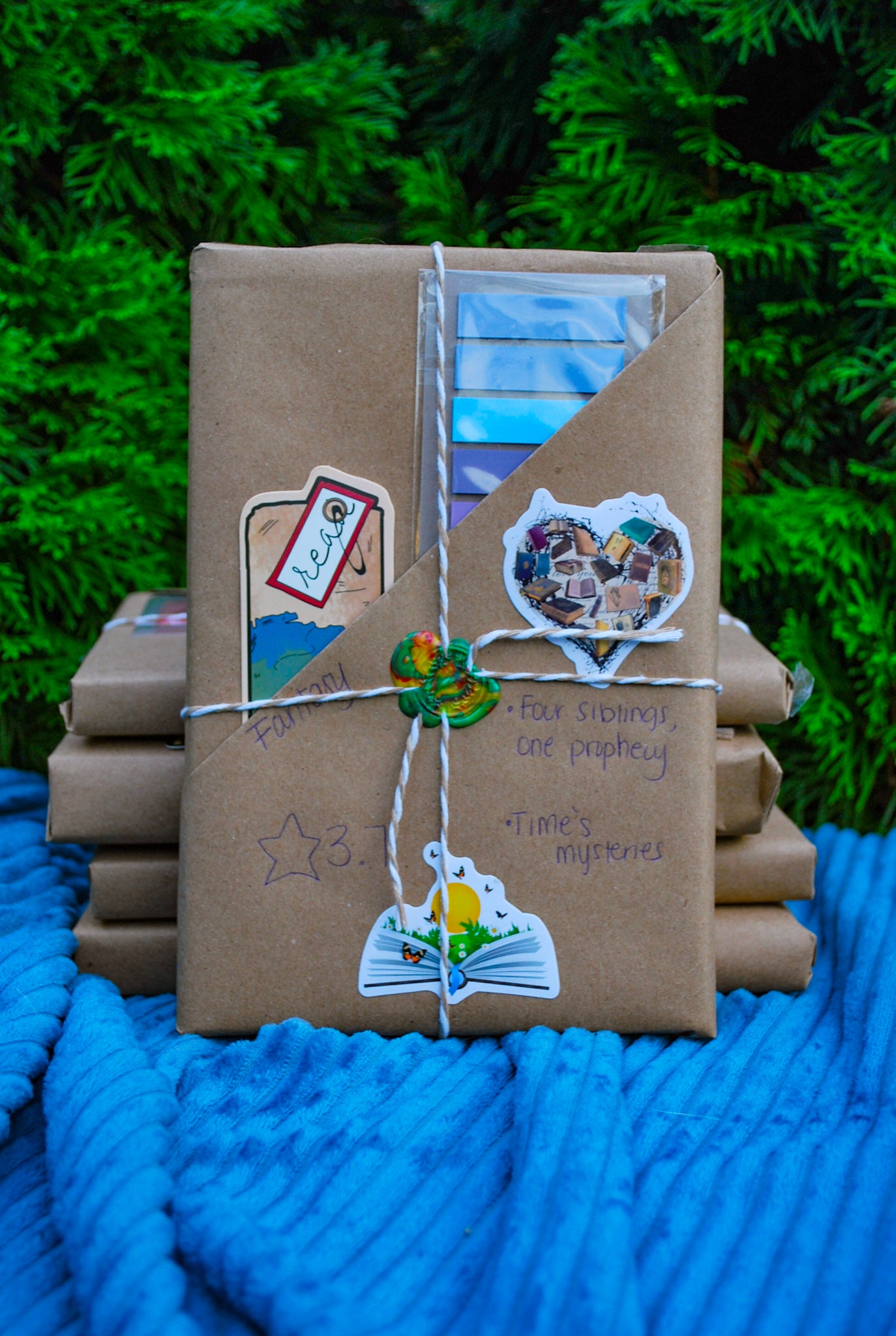 Each mystery thrift includes a few small bookish gifts such as stickers, bookmarks, annotation tabs, etc!